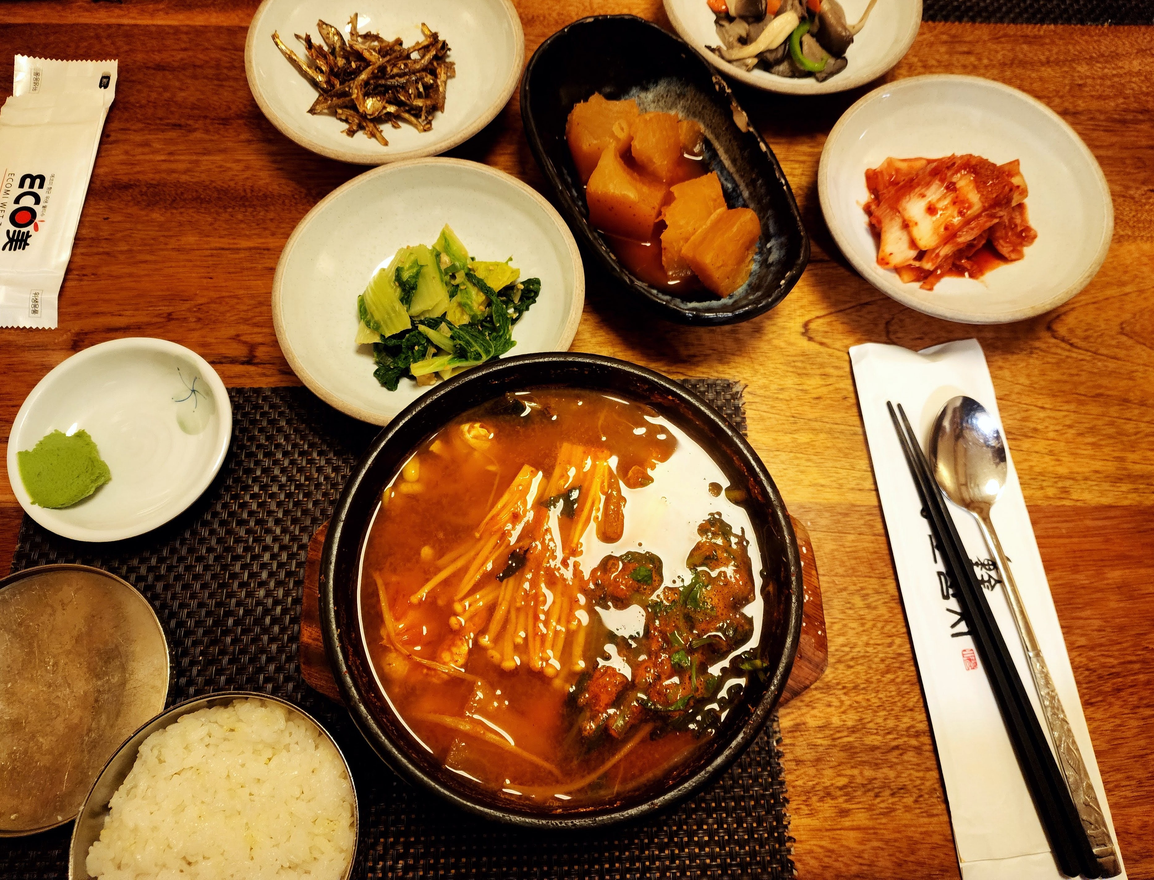 *참고 사항: 스테인리스물병, 개별포장수저, 매장용컵, 매우청결, 테이블서비스, 대면주문