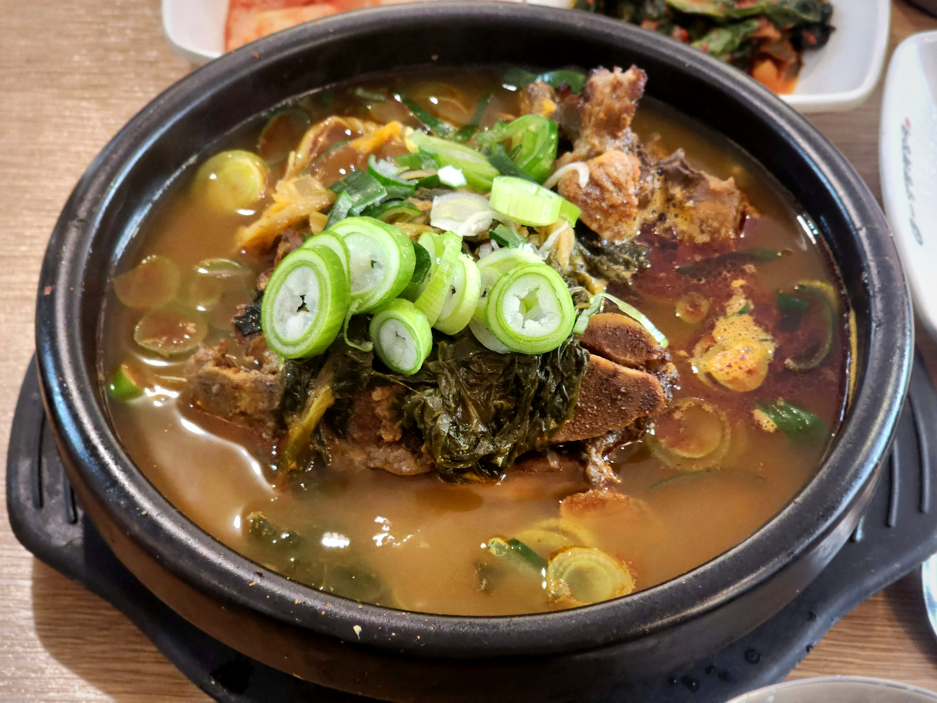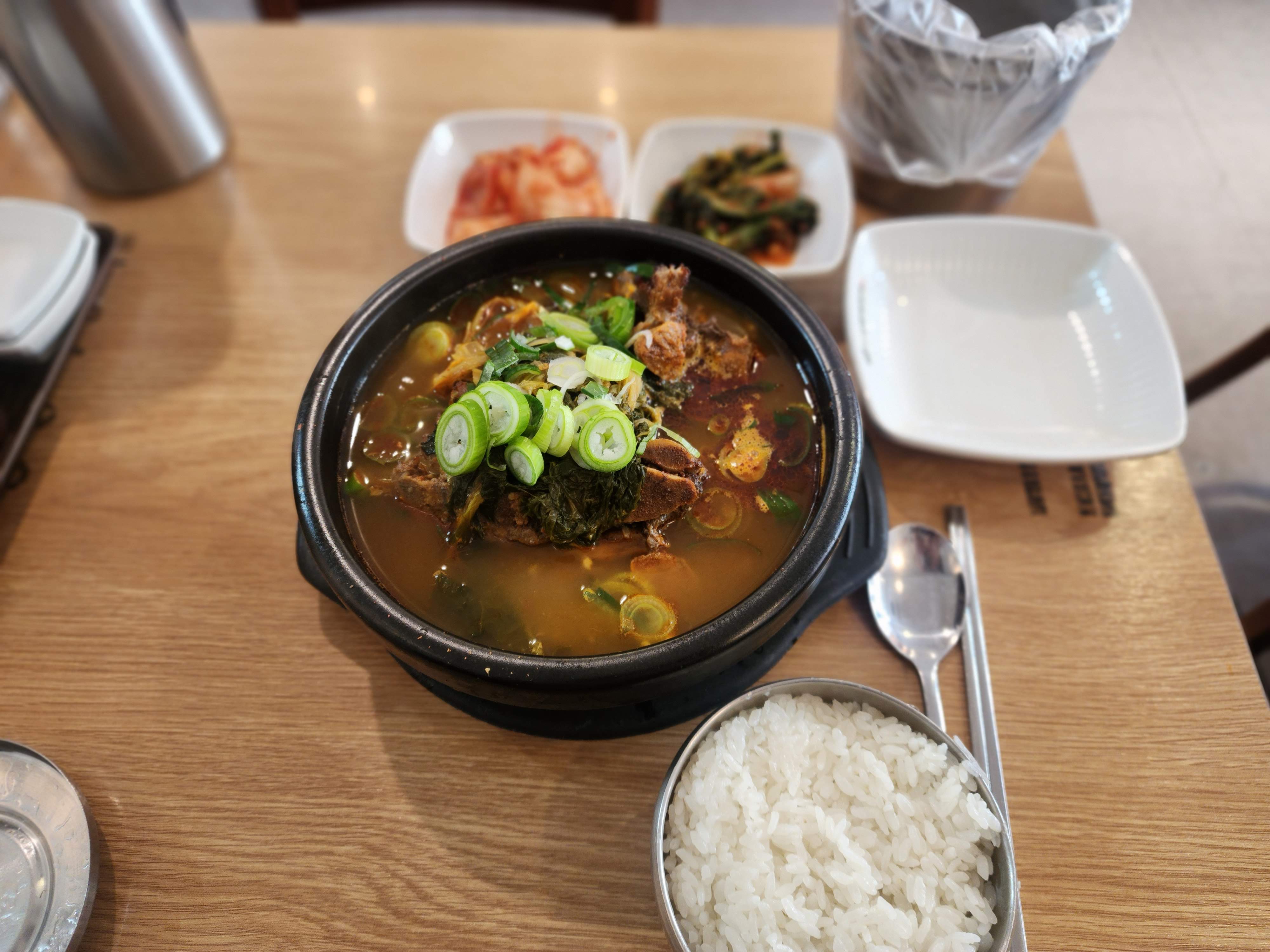 대표 메뉴 가운데 하나인 뼈다귀해장국은 투박한 뚝배기에 담아 제공한다. 진한 육수는 붉은 색감만큼 깊은 풍미를 자랑한다. 오랜 시간 고아 부드러워진 뼈 고기의 식감은 숨 죽은 우거지와 대조를 이루며, 마지막에 올린 생 대파의 아삭함이 묵직한 국물 맛의 균형을 잡는다. 알싸하면서도 개운한 맛으로 든든한 한 끼를 완성한다.** 굉장히 민첩한 홀서빙 직원과 노련한 점주의 환상적인 팀워크