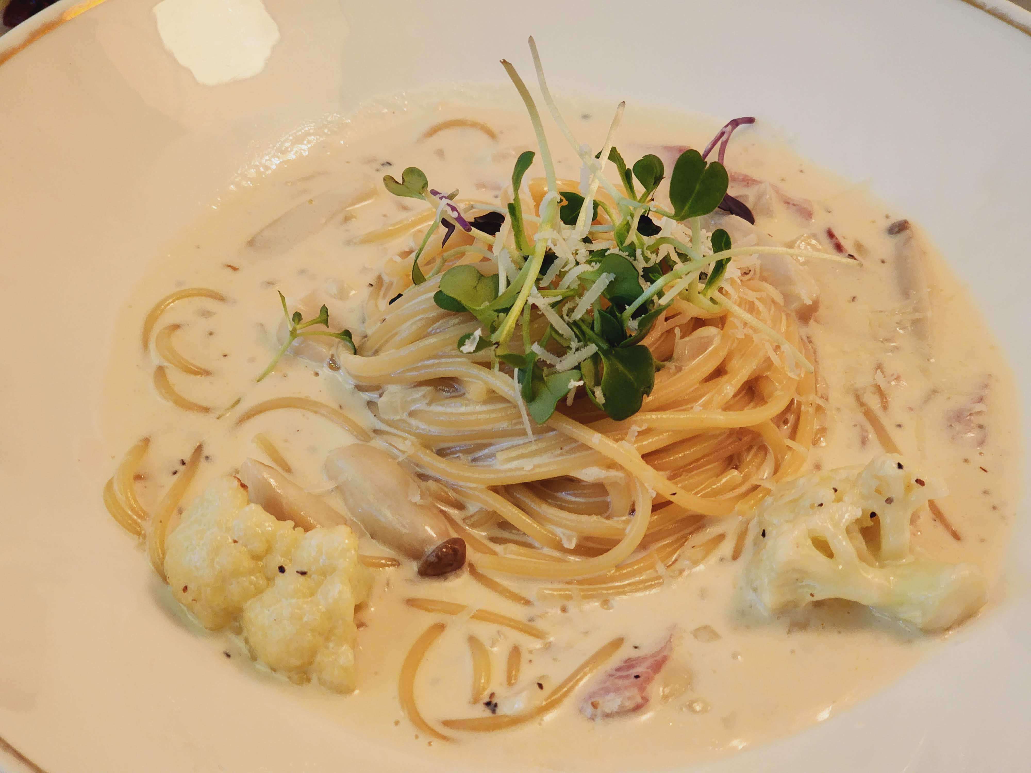 파스타와 피자를 주력으로 하는 캐주얼한 공간. 하얀 벽면과 은은한 빛이 어우러져 차분하면서도 편안한 식사 환경을 조성한다. 익숙한 이탈리안 메뉴에 한국적인 토핑 변주를 더해 대중적 맛이 내는 균형을 꾀한다. 피자는 얇은 도우가 지닌 바삭한 질감 위로 페퍼로니의 짭조름한 풍미와 감자 소스의 부드러운 단맛을 대비시켰다. 고온에서 구워낸 도우의 고소함과 녹아내린 치즈의 밀도 있는 조화가 인상적이다. 크림 파스타는 적당한 점도를 유지하는 소스가 면에 고르게 배어 있으며, 컬리플라워와 버섯을 큼직하게 곁들여 아삭한 식감을 살렸다.