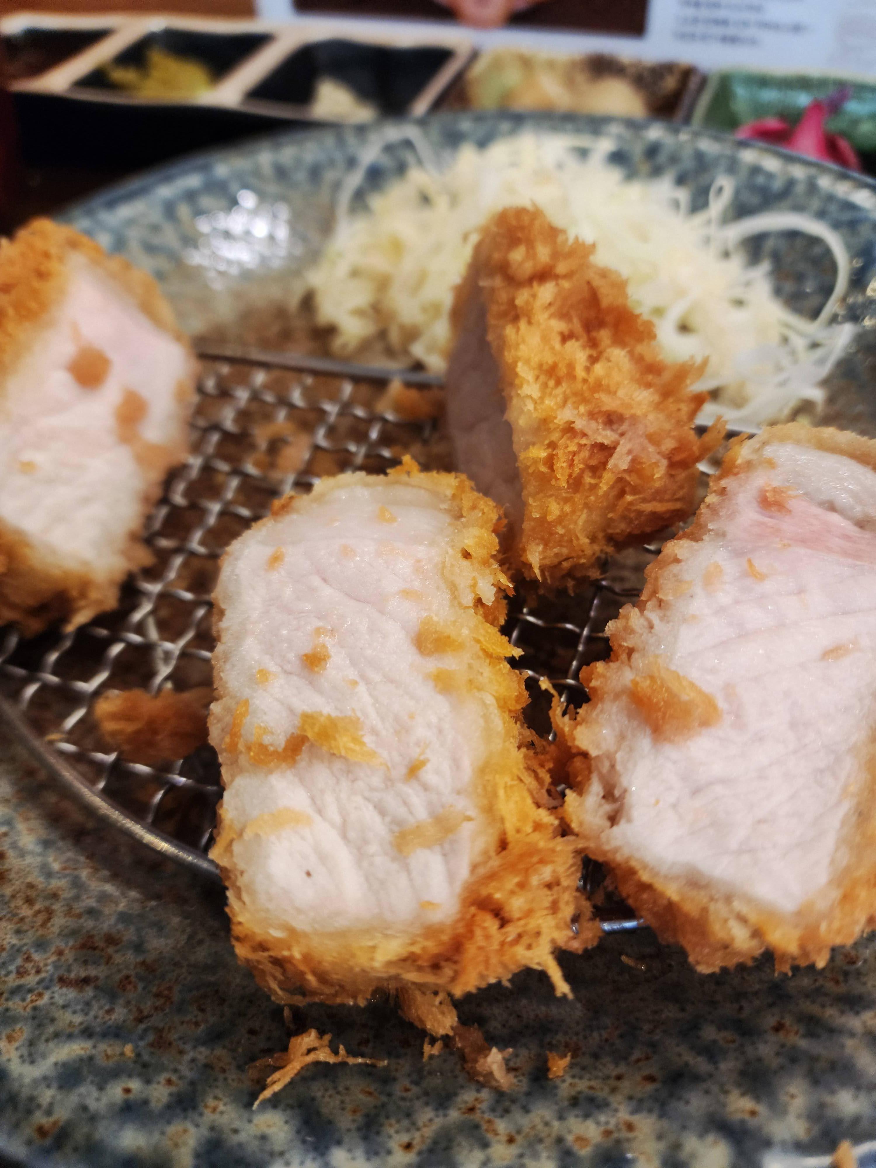 차분하지만 다정한 접객으로 기분 좋은 식사를 시작한다. 이곳의 돈카츠는 두툼한 두께를 자랑하면서도, 저온 조리 기법을 사용한 듯 중심부에 은은한 분홍빛이 맴돌며 풍부한 육즙을 뽐낸다. 돈카츠이지만 주인공은 튀김이 아닌 고기. 바삭한 튀김옷은 고기를 쌈처럼 감싸 입안에 담백함을 전하는 보조 수단일 뿐, 부드러운 육질과 촉촉한 고기가 당당히 존재감을 뽐낸다. 레몬 소금과 유즈코쇼를 차례대로 곁들이며 다양한 맛을 즐기는 것도 재미이다.인기가 많은 곳이므로 붐비는 시간대를 피해 방문하는 것을 추천한다.